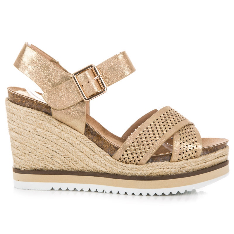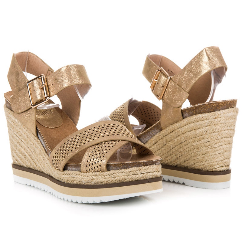Dominujący żółty kolor z ozdobnymi złotymi akcentami nie tylko przyciąga wzrok, ale również doskonale komponuje się z letnimi sukienkami, spódnicami czy szortami. Wygodna i stylowa wkładka ze skóry ekologicznej zapewnia komfort na każdym kroku, co czyni te sandały idealnym wyborem na wakacyjne spacery, letnie imprezy bądź codzienne wyjścia.