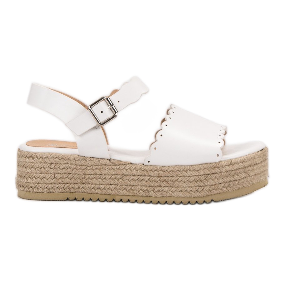 Sandały są wyposażone w szeroki pasek, który skutecznie przytrzymuje palce, zapewniając stabilność i wygodę noszenia. Dodatkowo, sprzączka pozwala na perfekcyjne dopasowanie do stopy, co sprawia, że każdy krok jest komfortowy. Wysoka platforma ozdobiona trzema paskami ze sznurka jutowego nadaje sandałom wyjątkowego charakteru i stylowego wyglądu.