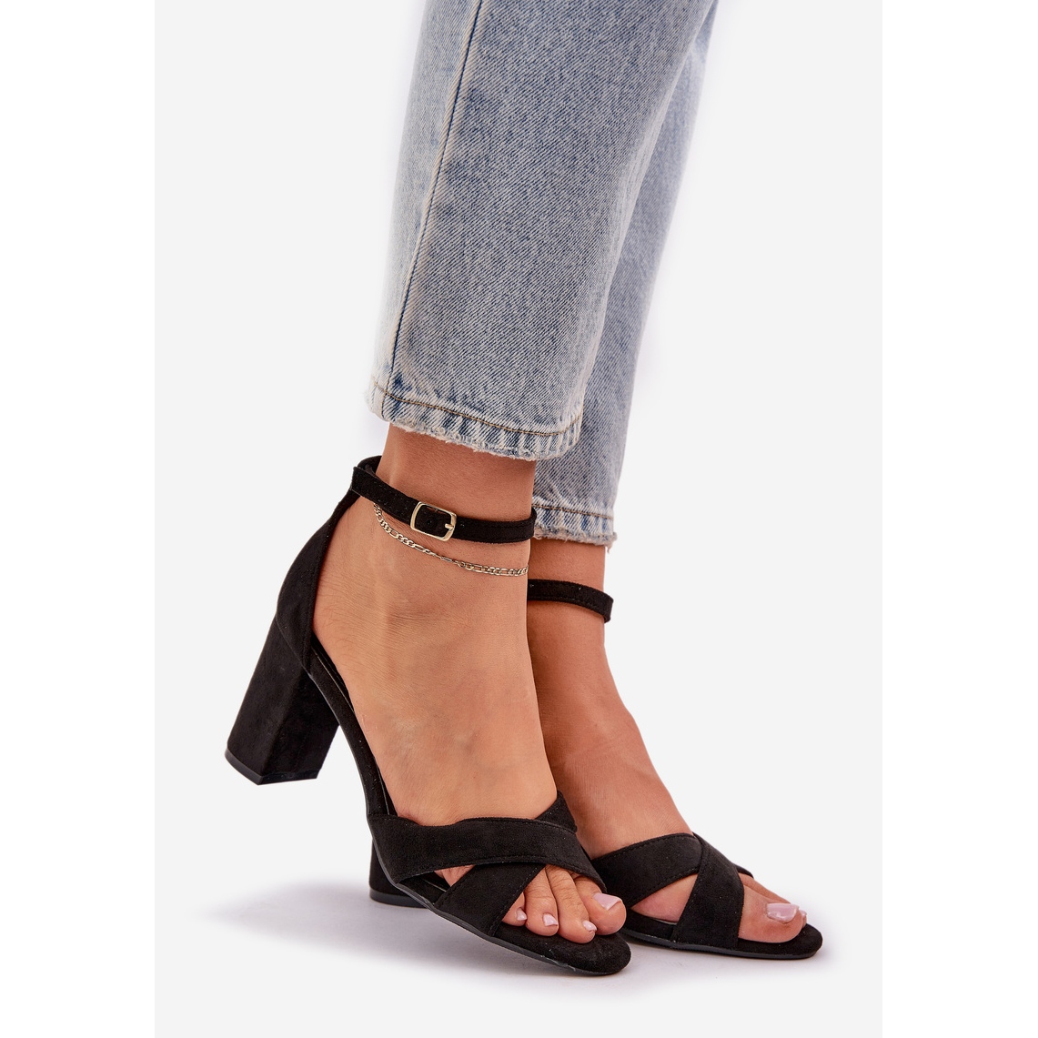 Szczegóły: Sandały Na Słupkowym Obcasie Z Eko Zamszu Czarne