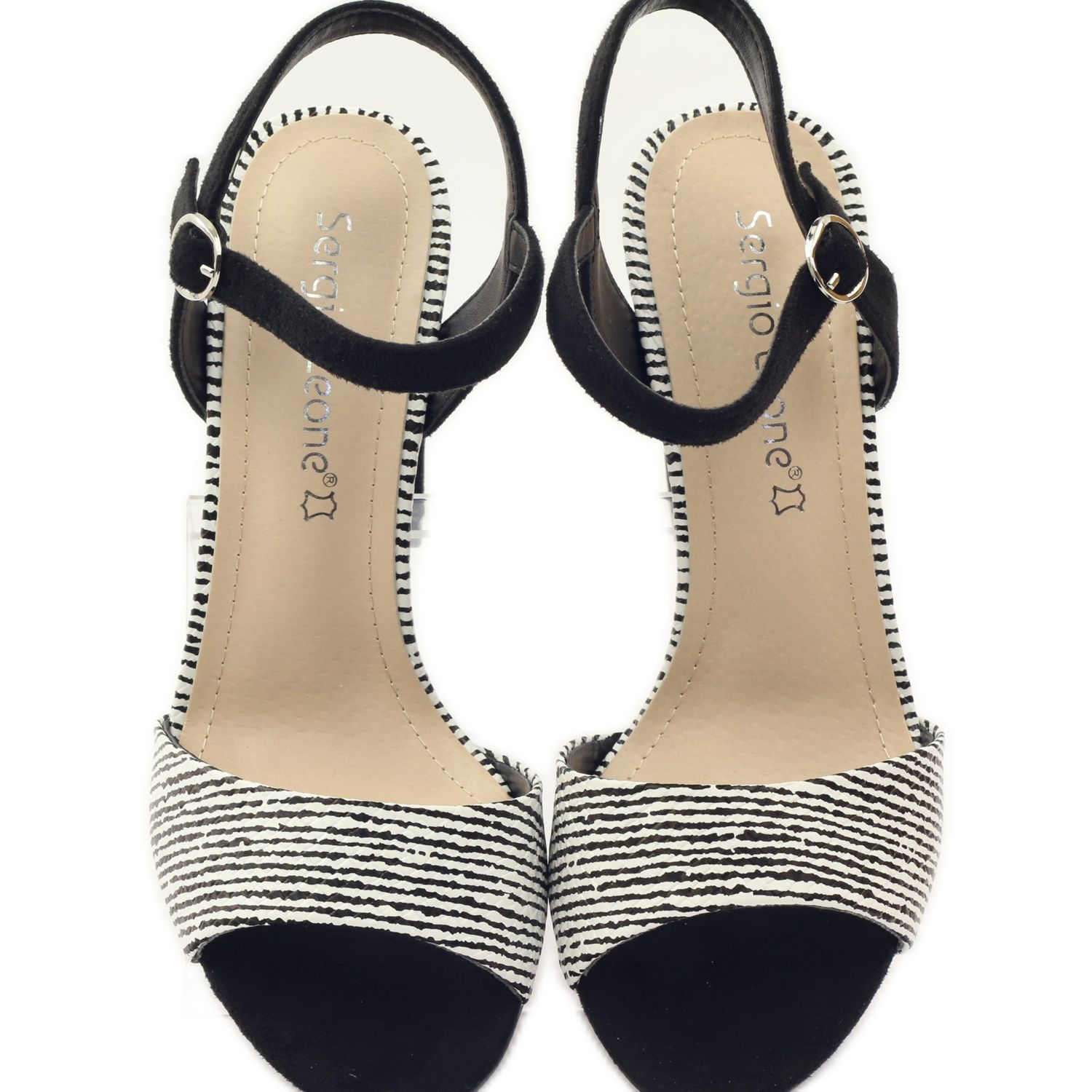 Sergio Leone Sandały na słupku Sergio Leone 820 w paski białe czarne