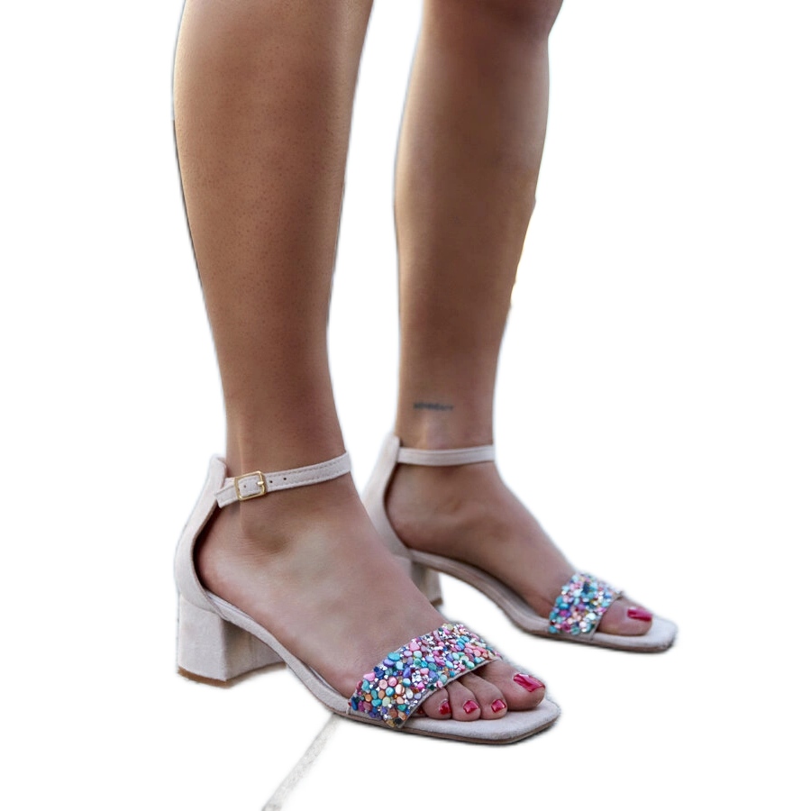 Szczegóły: Sandały na słupku z kolorowymi kamyczkami Ghusona beżowy