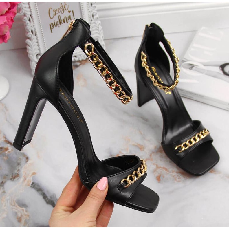 Szczegóły: Sandały na słupku z łańcuszkiem Potocki W WOL70A czarne