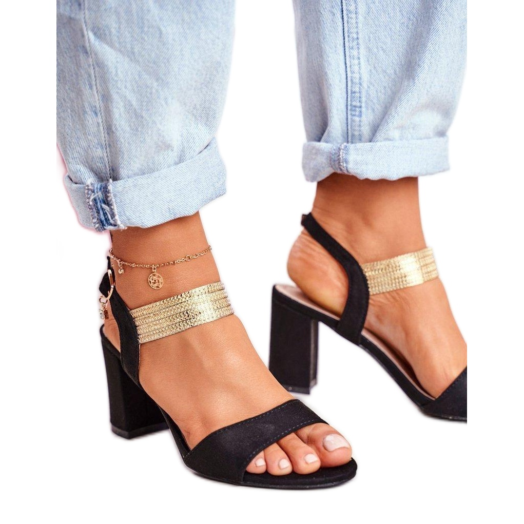 Szczegóły: Sandały na słupku z ozdobnym paskiem Black czarne