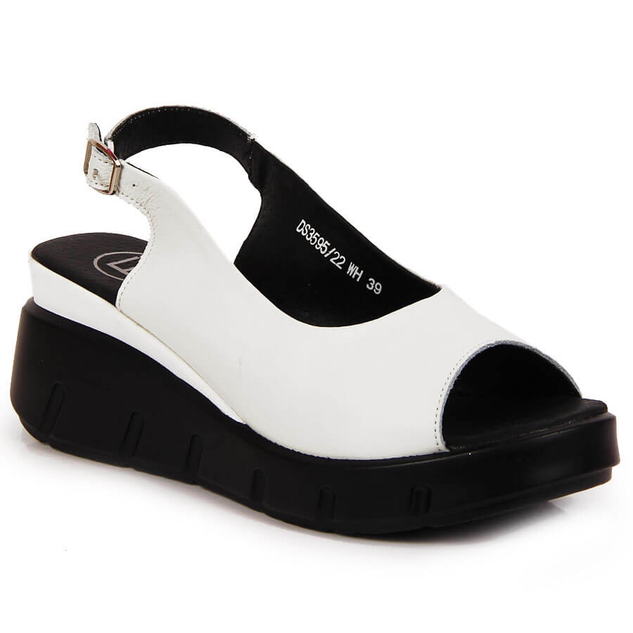 Szczegóły: Sandały skórzane damskie na koturnie białe Filippo