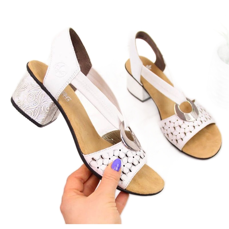 Sandały skórzane Rieker W RKR433 — biel, która daje komfort