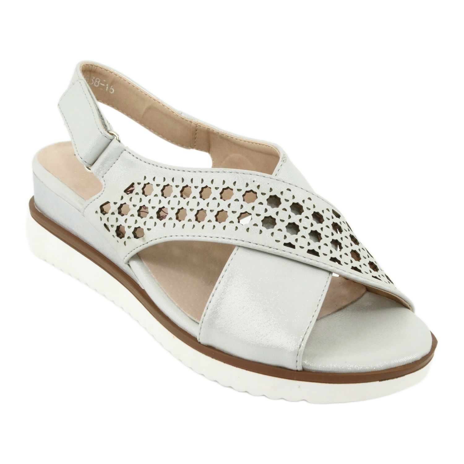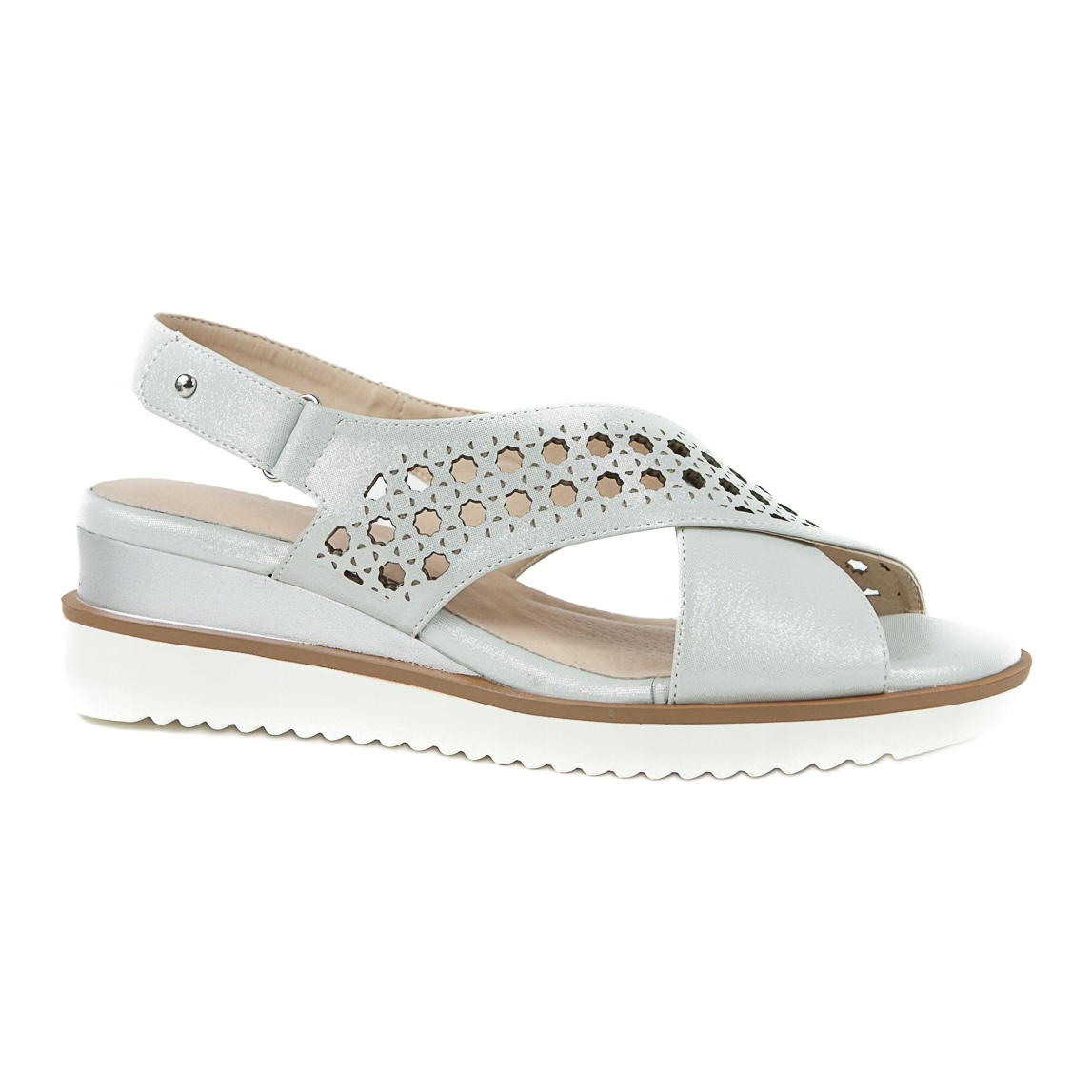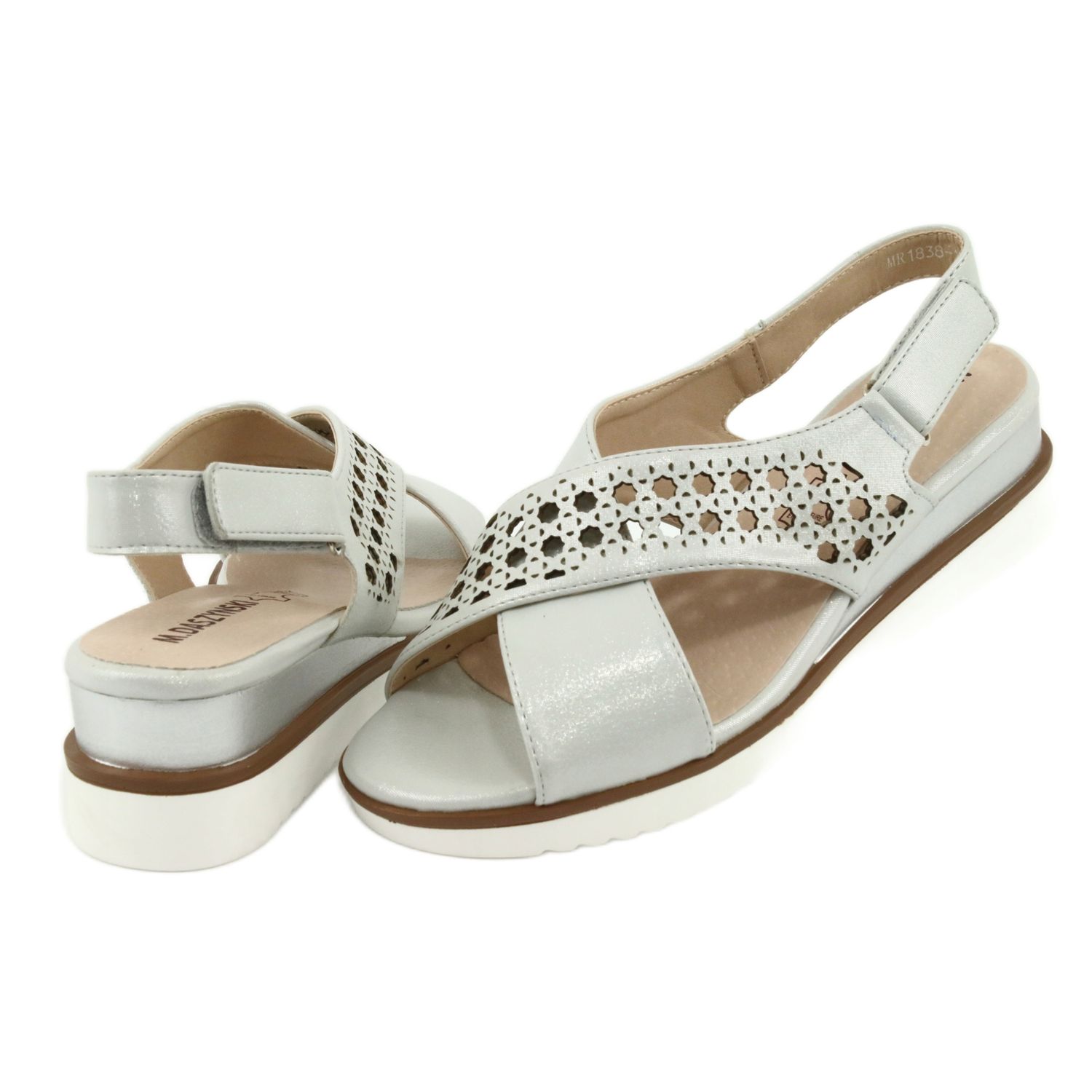 Szczegóły: M.Daszyński Sandały srebrne na koturnie Daszyński 1838 szare