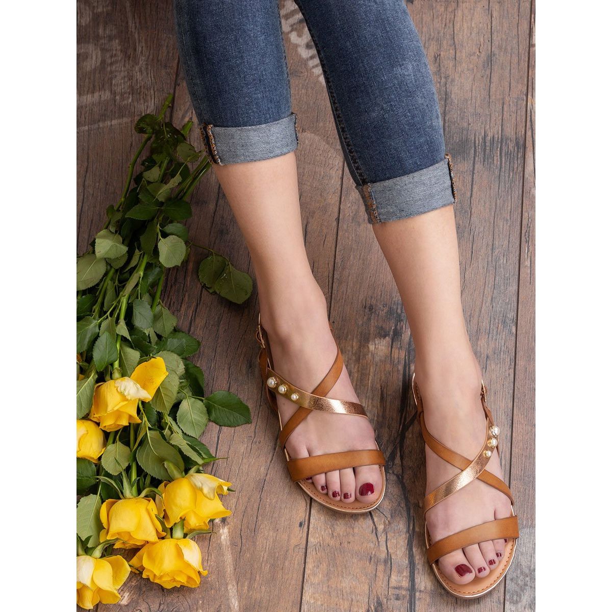 Small Swan Small Swan Sandały Z Perełkami brązowe