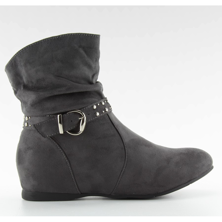 Saszki pasek z ćwiekami PE103 grey — stylowe i wygodne botki damskie, które sprawdzą się na co dzień. Szary kolor i zamszowa ekoskóra tworzą uniwersalny, elegancki look, a marszczona cholewka z ozdobnym paskiem z ćwiekami dodaje charakteru. Ukryty koturn o wysokości 5 cm zapewnia subtelne podniesienie bez rezygnacji z komfortu.