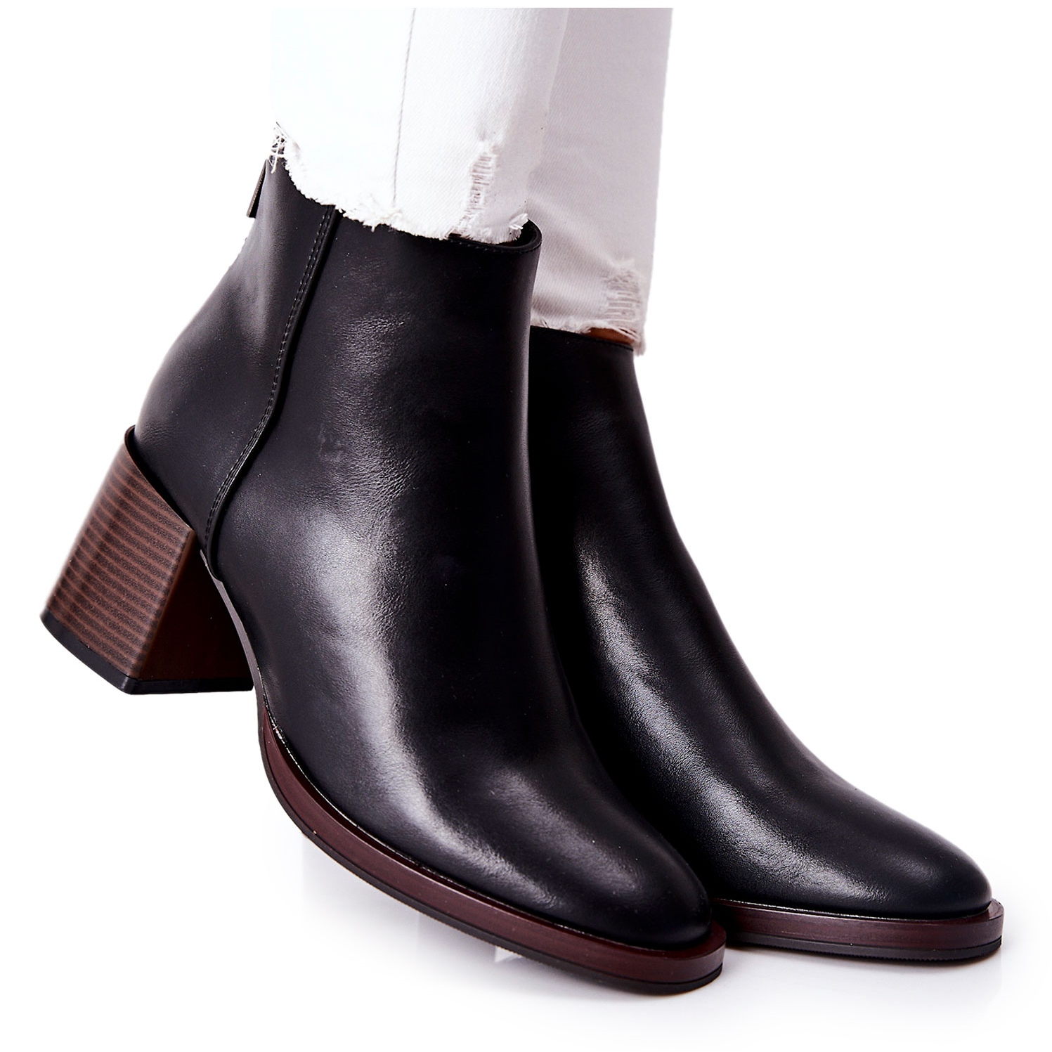 Stabilny słupek o wysokości 8 cm zapewnia wygodę noszenia przez cały dzień, a delikatne ocieplenie sprawia, że botki świetnie sprawdzą się w chłodniejsze dni. Dodatkowym atutem jest wszyty zamek, który ułatwia zakładanie oraz zdejmowanie obuwia, a ozdobna wstążka z tyłu dodaje im unikalnego charakteru.