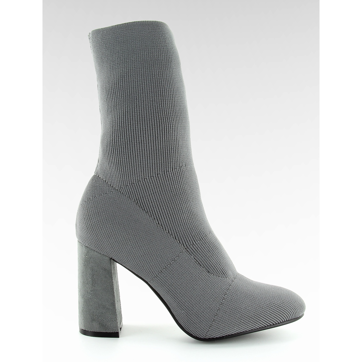 Obłędne botki damskie QQ-08 Grey, wzorowane na projektach gwiazd, łączą nowoczesny design z codziennym komfortem. Cholewka z miękkiej, elastycznej tkaniny przypominającej fakturę skarpetki dopasowuje się do nogi, podkreślając jej smukłą linię. Stabilny słupek o wysokości 9,5 cm zapewnia pewny krok, jednocześnie wysmuklając sylwetkę.