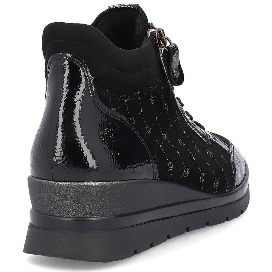 Rieker Rieker Skórzane botki damskie logowane lakierowane Remonte R0773-04 czarne