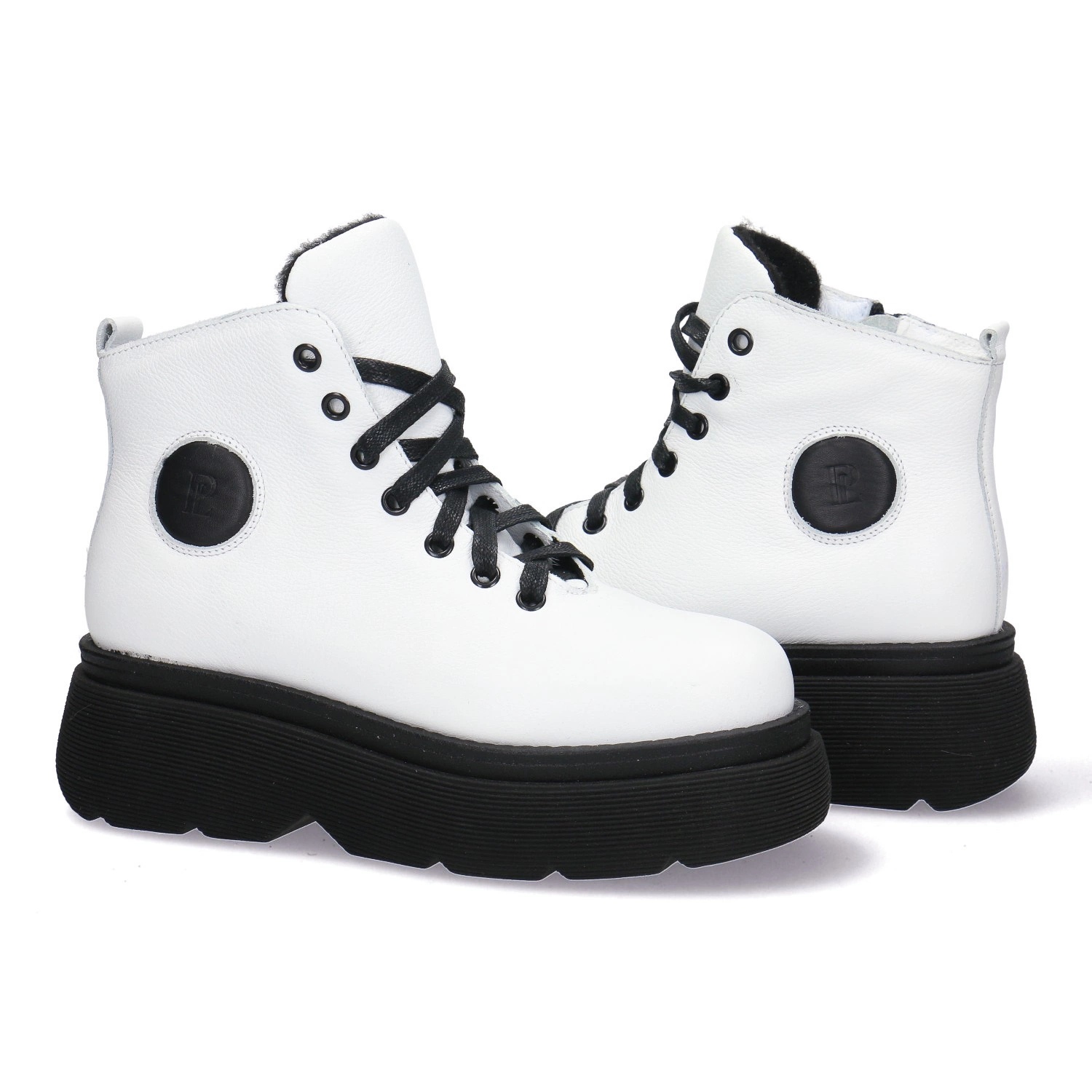 KOMODO KOMODO Skórzane botki damskie na grubej podeszwie Pollonus biały 5-1567-004 białe