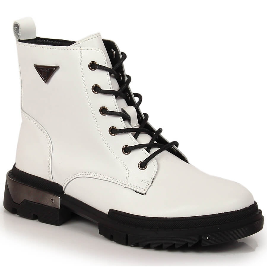 Szczegóły: Skórzane botki damskie ocieplane białe Filippo PAW377A