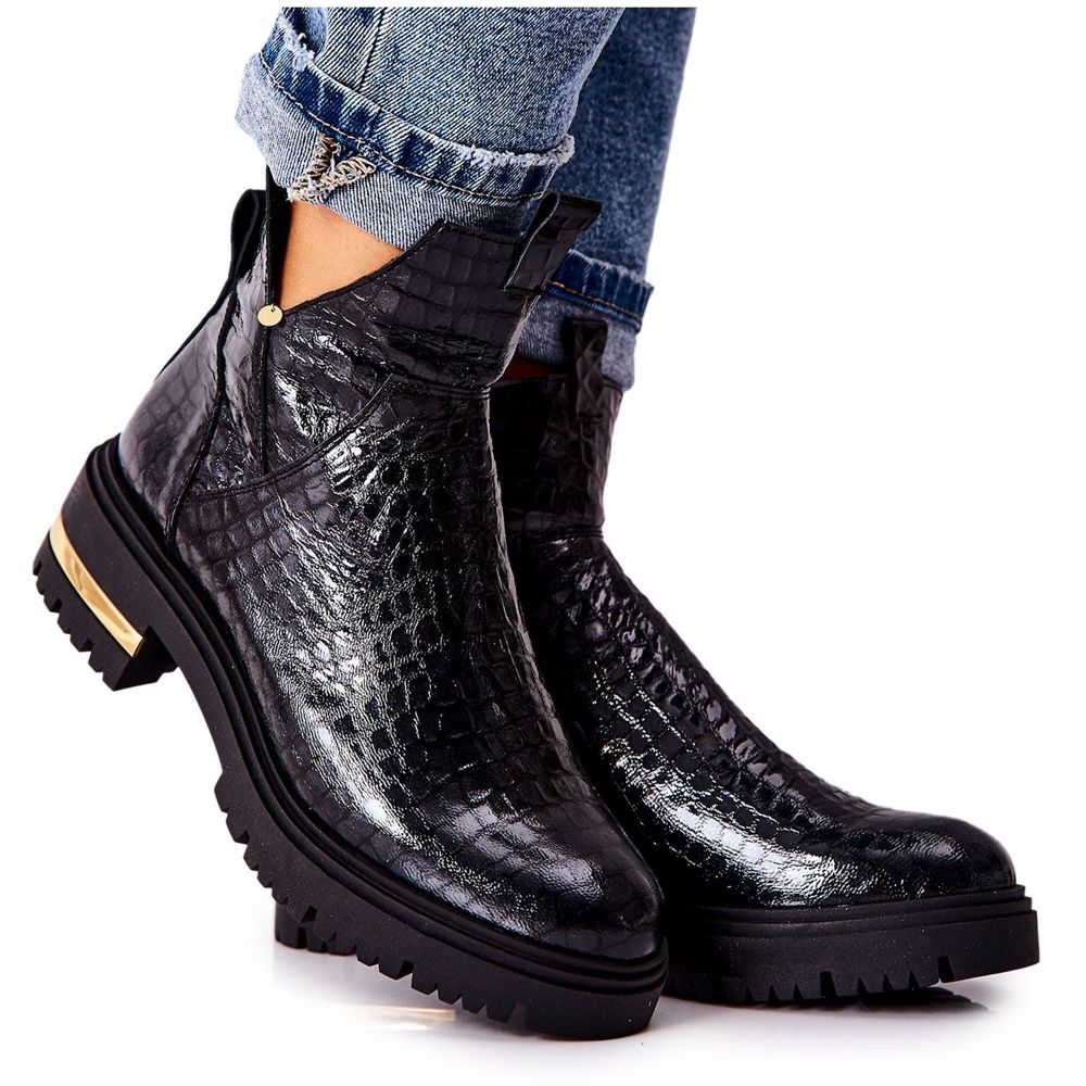 Szczegóły: PA2 Skórzane Botki Ocieplane Krokodyl Czarne Tanya