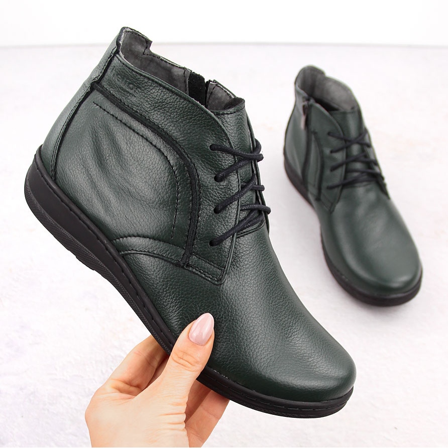 Szczegóły: Skórzane botki ocieplane na podwyższeniu zielone Helios 612-2