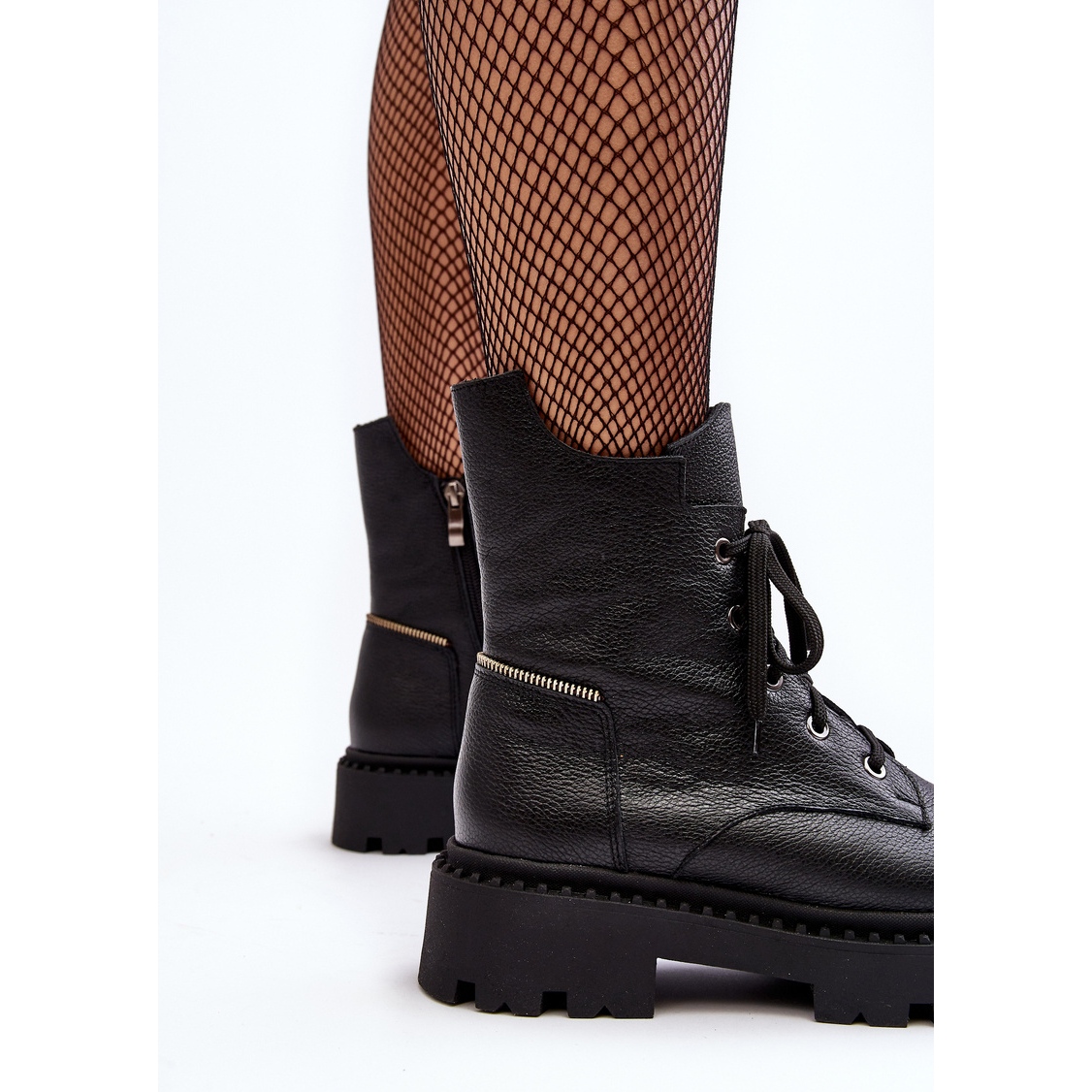 - Model: Skórzane Botki Trapery Damskie Na Suwak