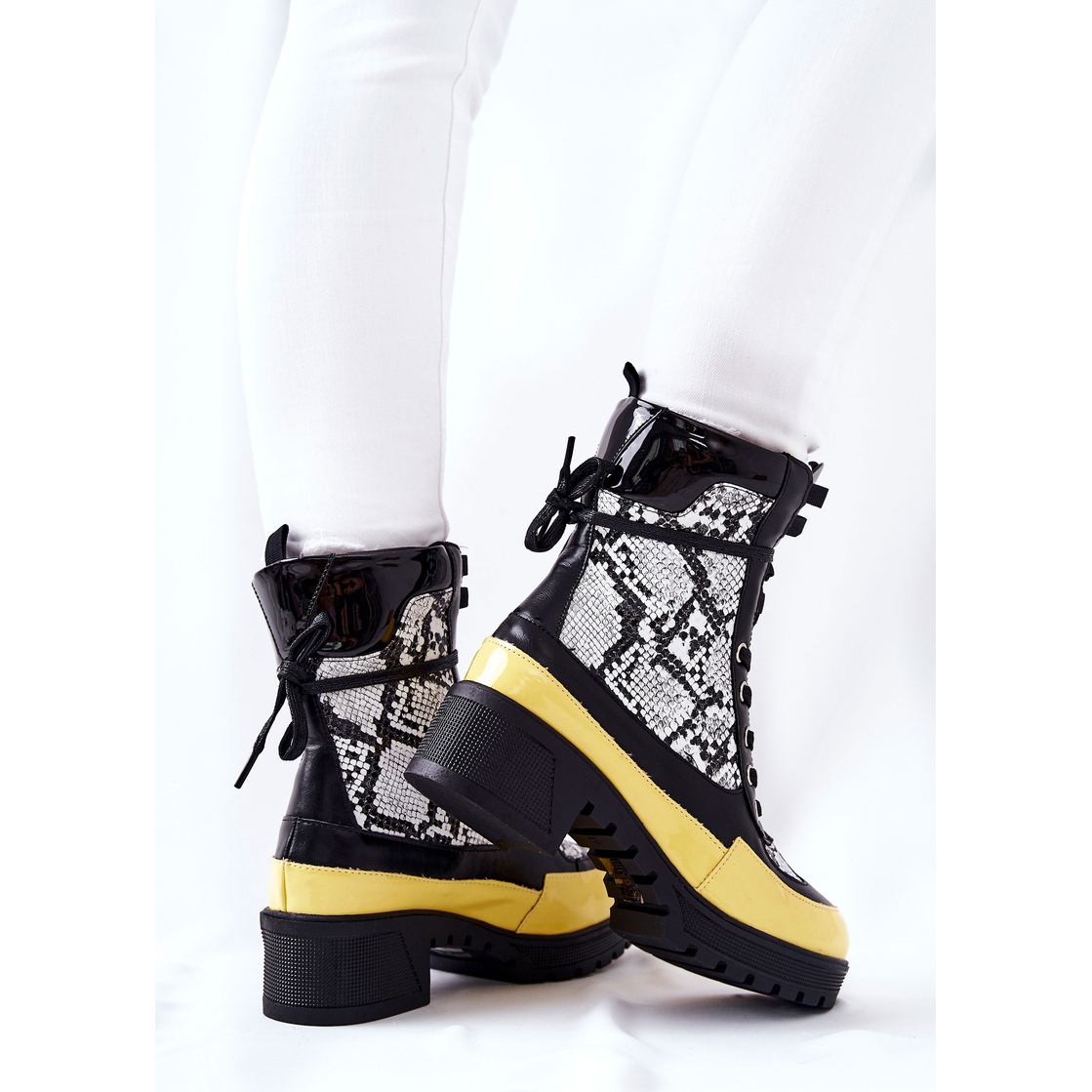 Szczegóły: Skórzane Botki Wężowe Czarno-Żółte Meridiah białe czarne