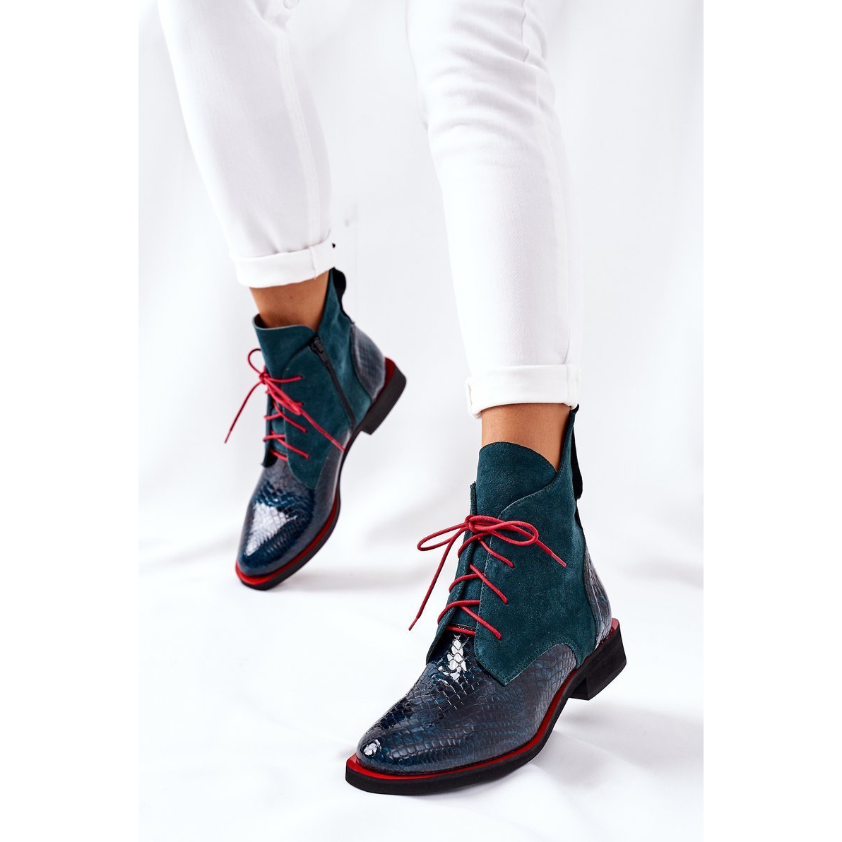 Alberto Violli Alberto Violli Skórzane Botki Z Krokodylim Wzorem Zielone Cheyenne czerwone