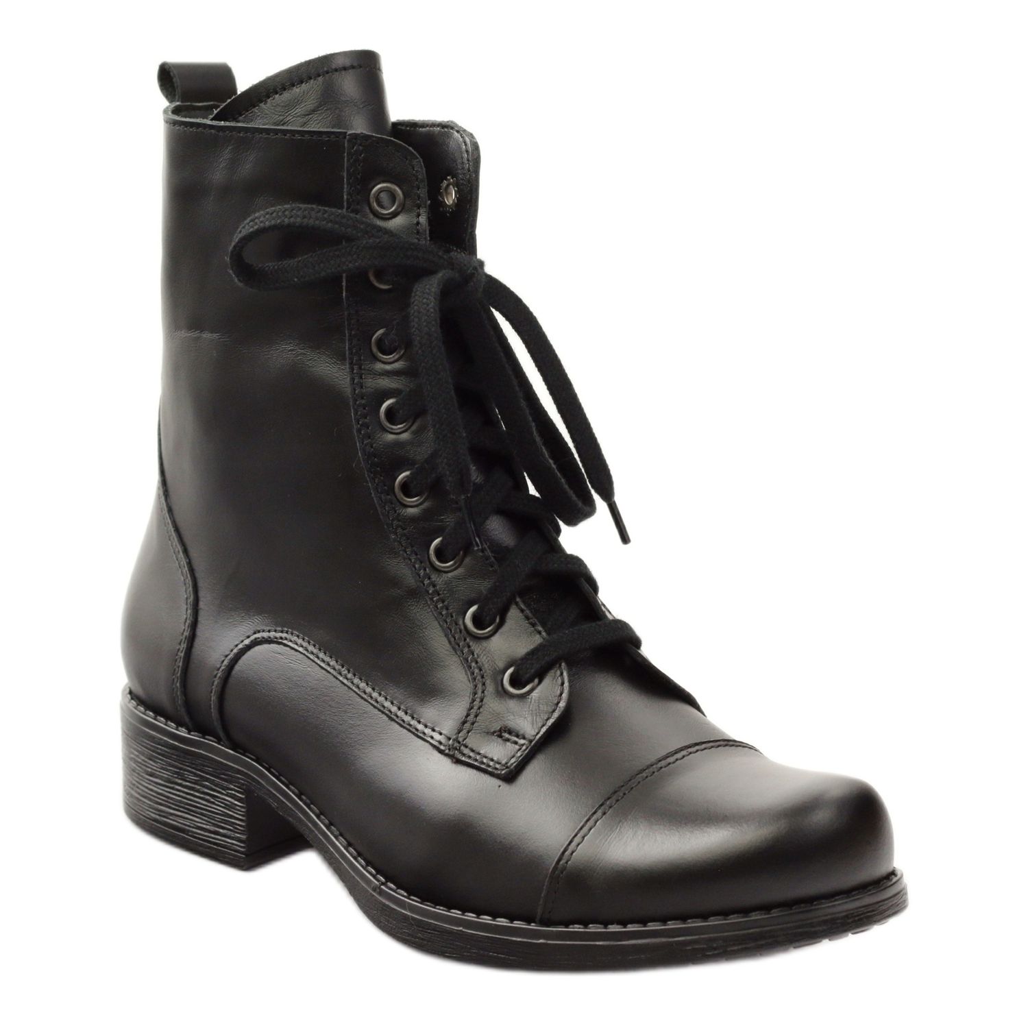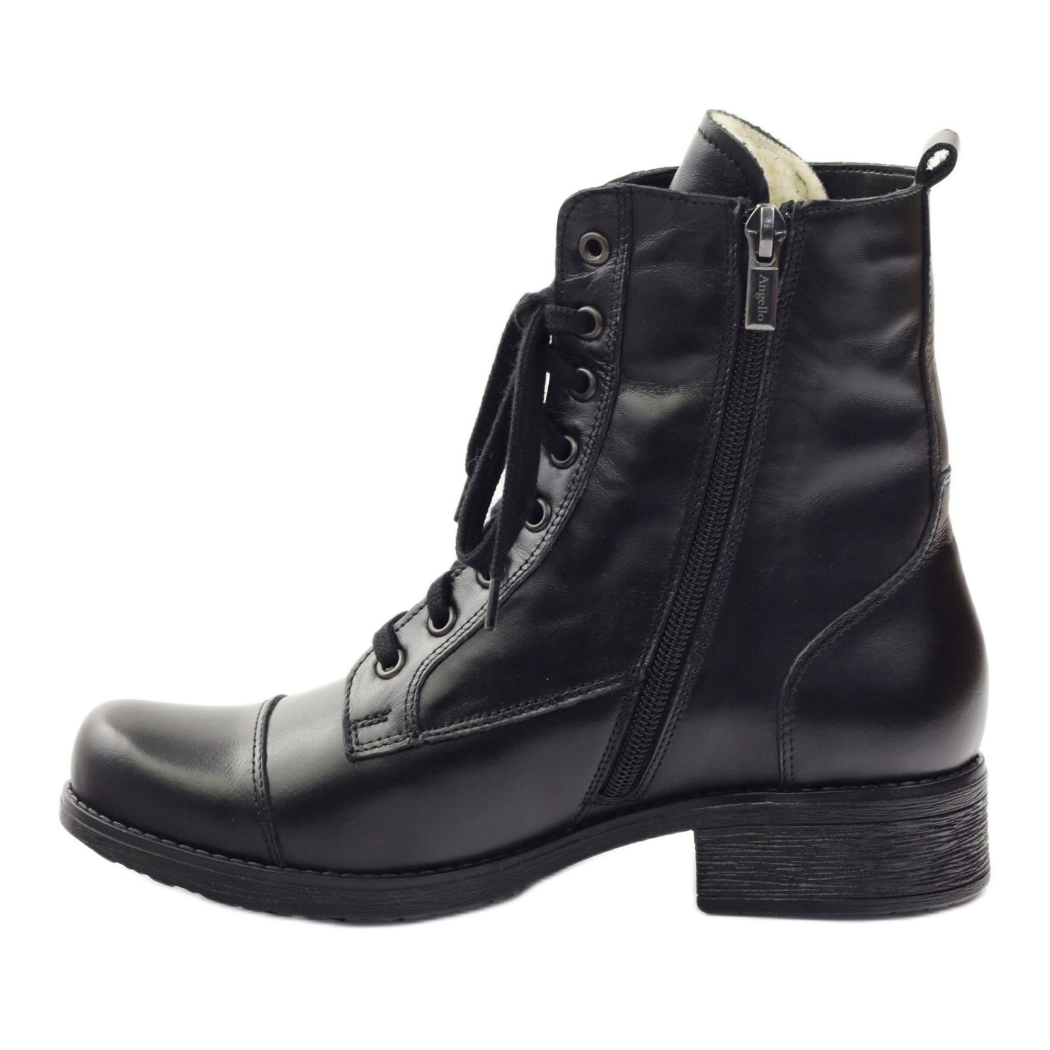 Angello Skórzane Botki z suwakiem Angello 2060 czarne