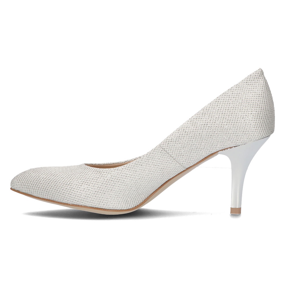 Tworzywowa podeszwa zapewnia trwałość i stabilność, a tęgość G sprawia, że czółenka doskonale dopasowują się do stopy, oferując wygodę podczas każdego kroku. Dzięki eleganckiemu srebrnemu kolorowi, które wspaniale odbija światło, te czółenka stanowią znakomite dopełnienie każdej stylizacji, zarówno na co dzień, jak i na specjalne wydarzenia.