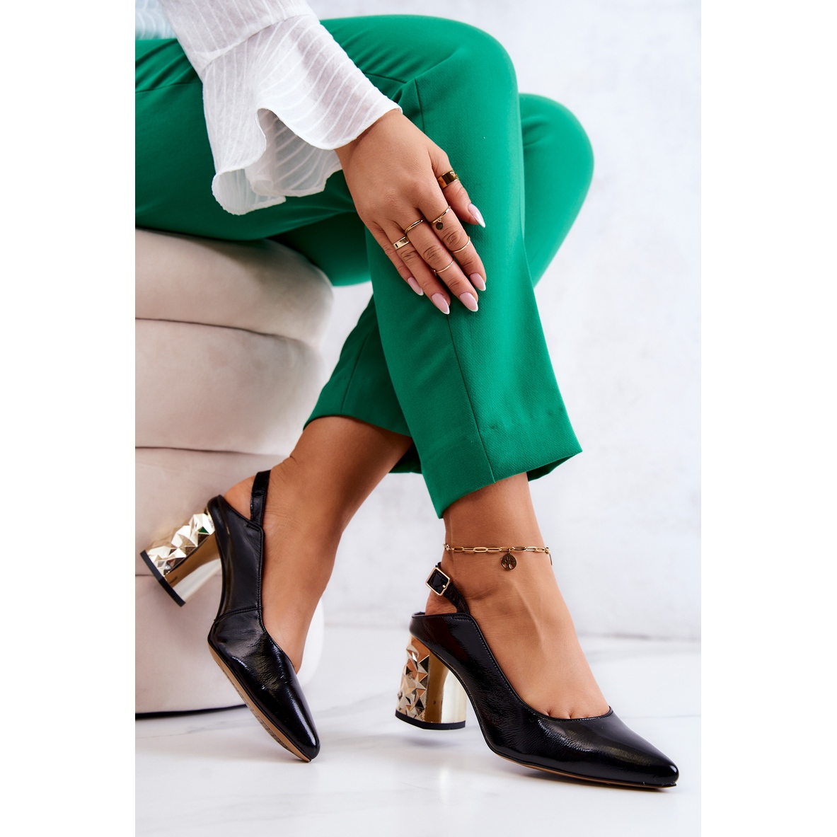 Szczegóły: Skórzane Czółenka Na Słupku Maciejka 05427-01 Czarne złoty