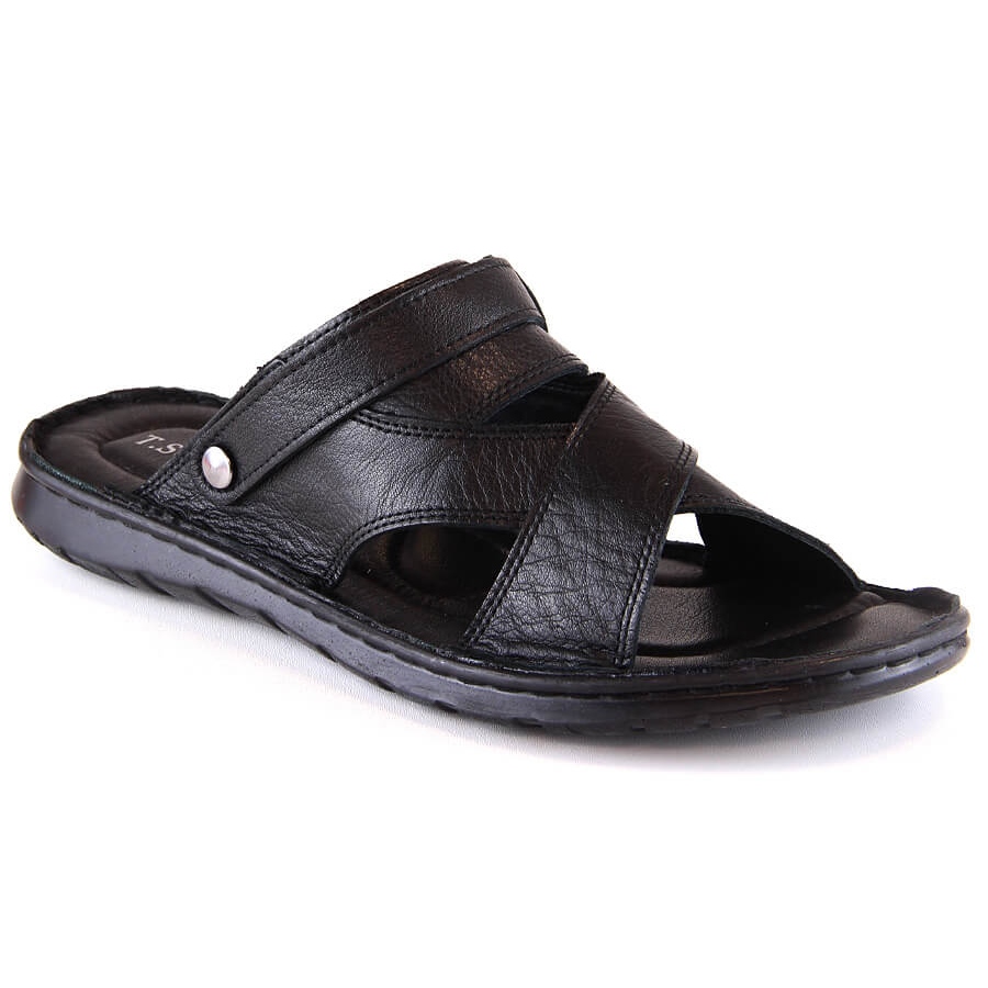 T.Sokolski Skórzane klapki sandały męskie czarne T.Sokolski LM20-02
