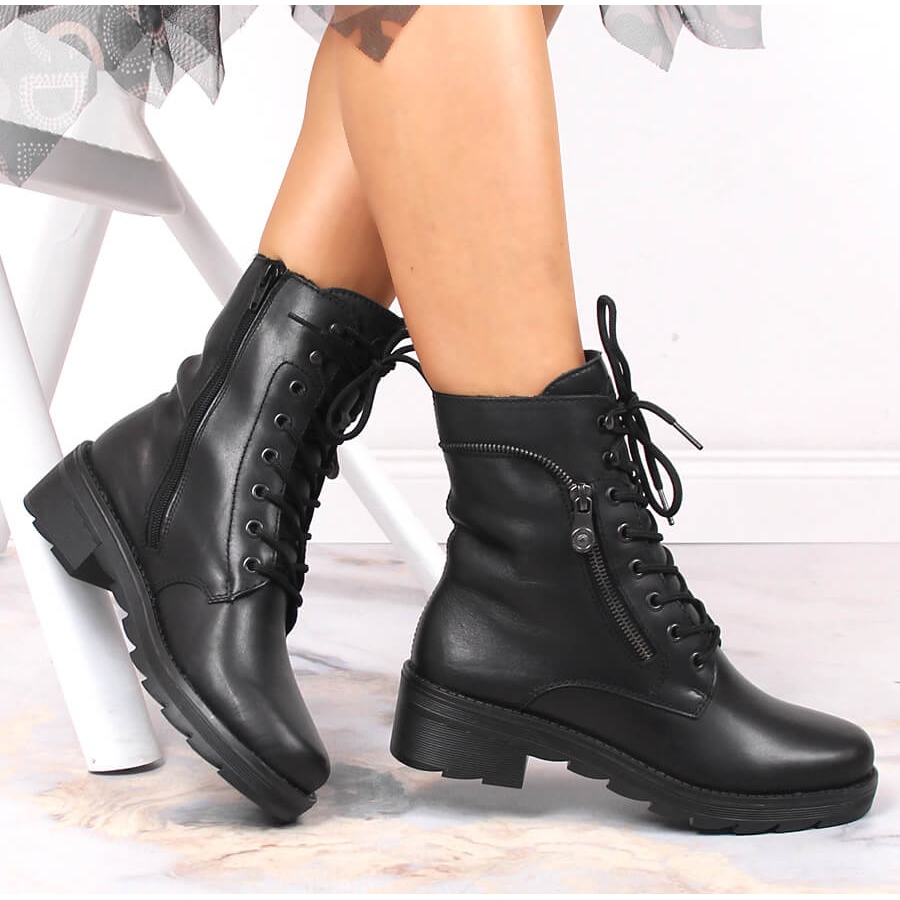 Szczegóły: Skórzane komfortowe botki damskie ocieplane czarne Rieker X0500-00
