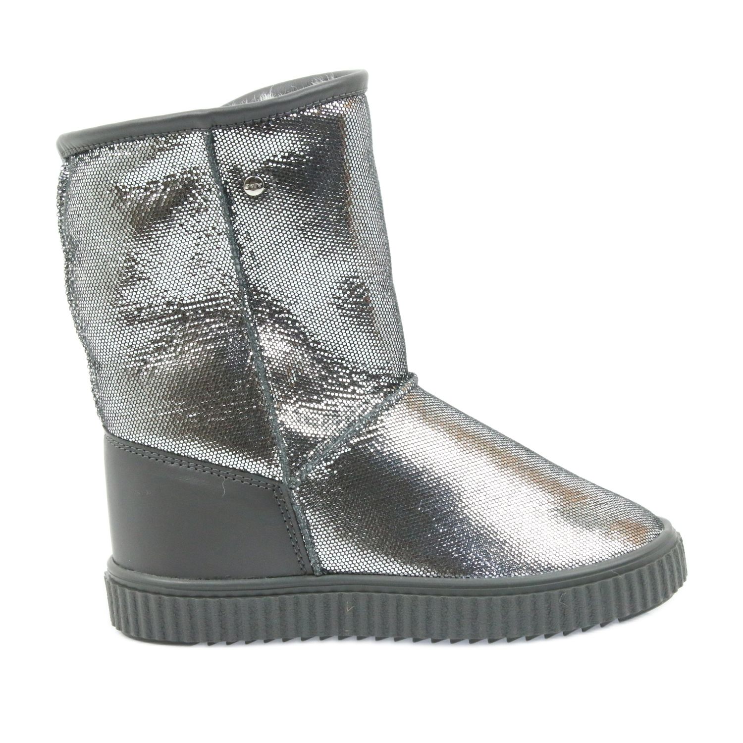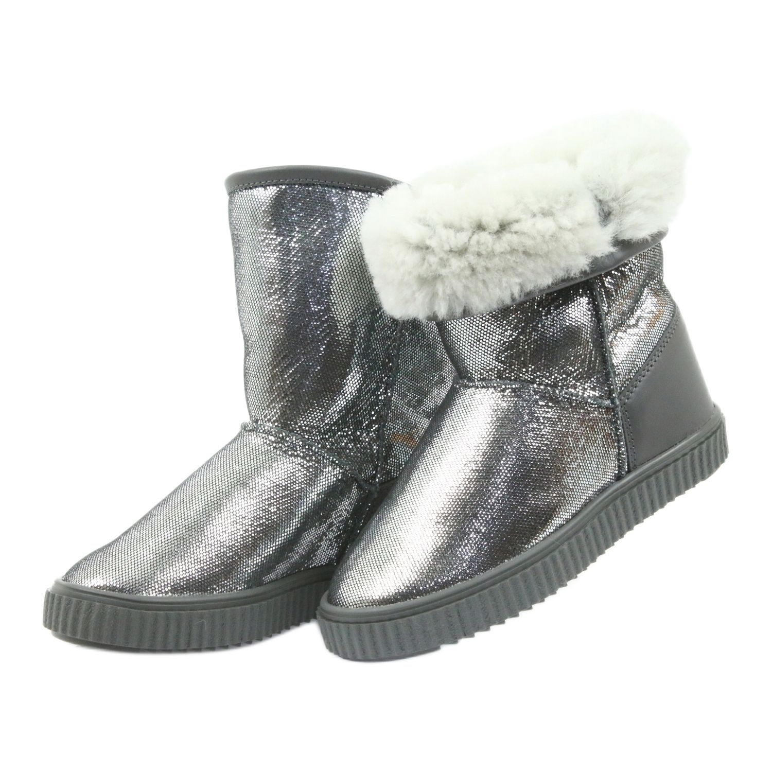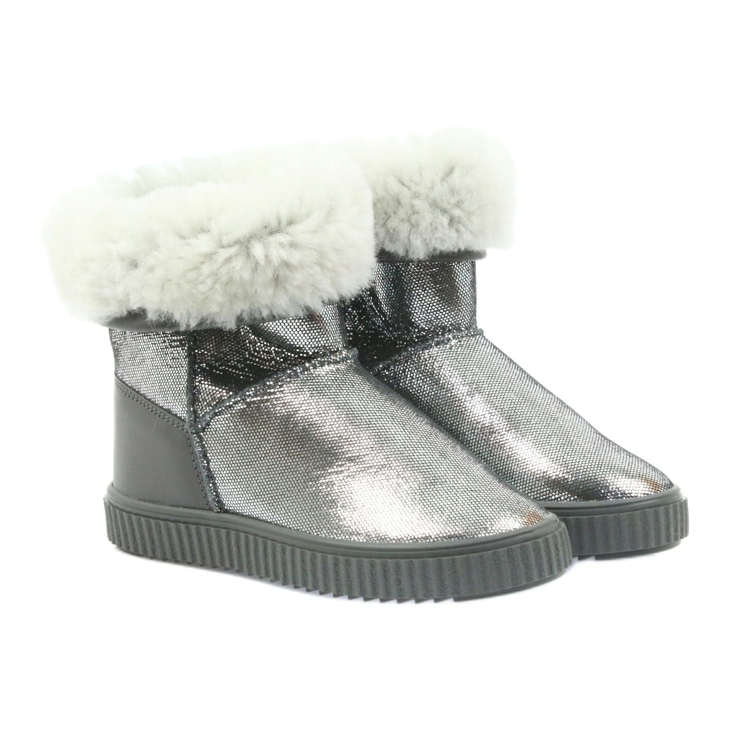 Skórzane kozaki Bartek 477750 — mukluki dla dziewczynek, srebrno‑szare
