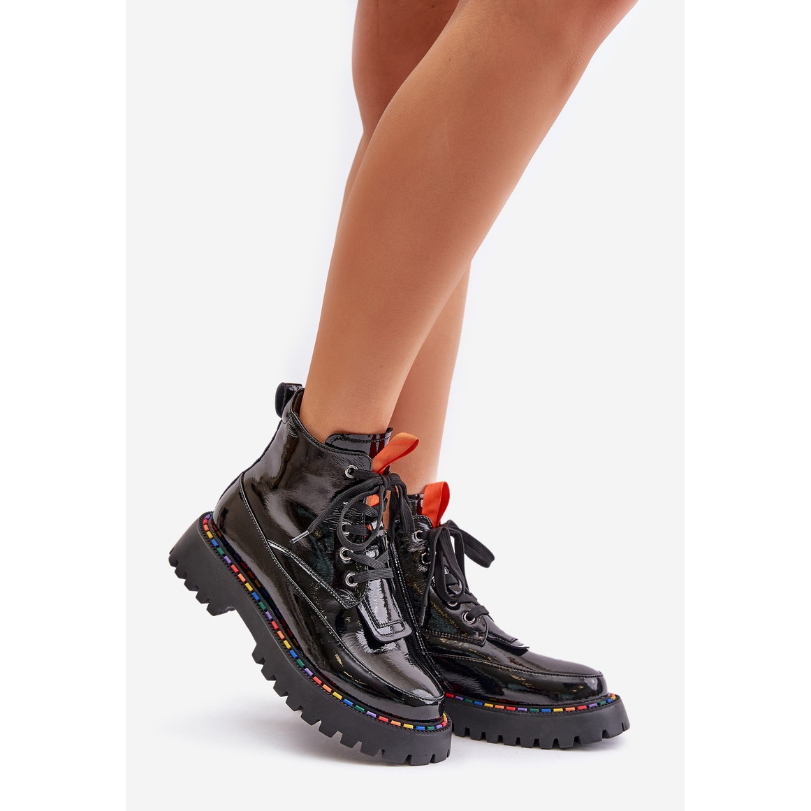 Inna marka Skórzane Lakierowane Botki Workery Na Zamek Czarne Anafra