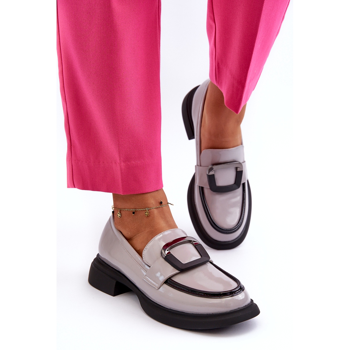 Szczegóły: Skórzane Lakierowane Mokasyny Damskie Vinceza Szare