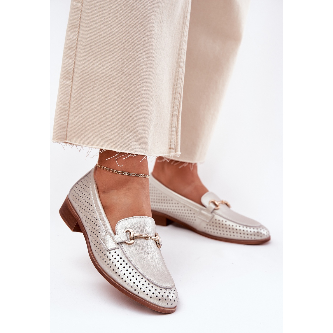 Szczegóły: Skórzane Mokasyny Damskie Z Ozdobą Na Płaskim Obcasie S.Barski LR51-594 Srebrne srebrny