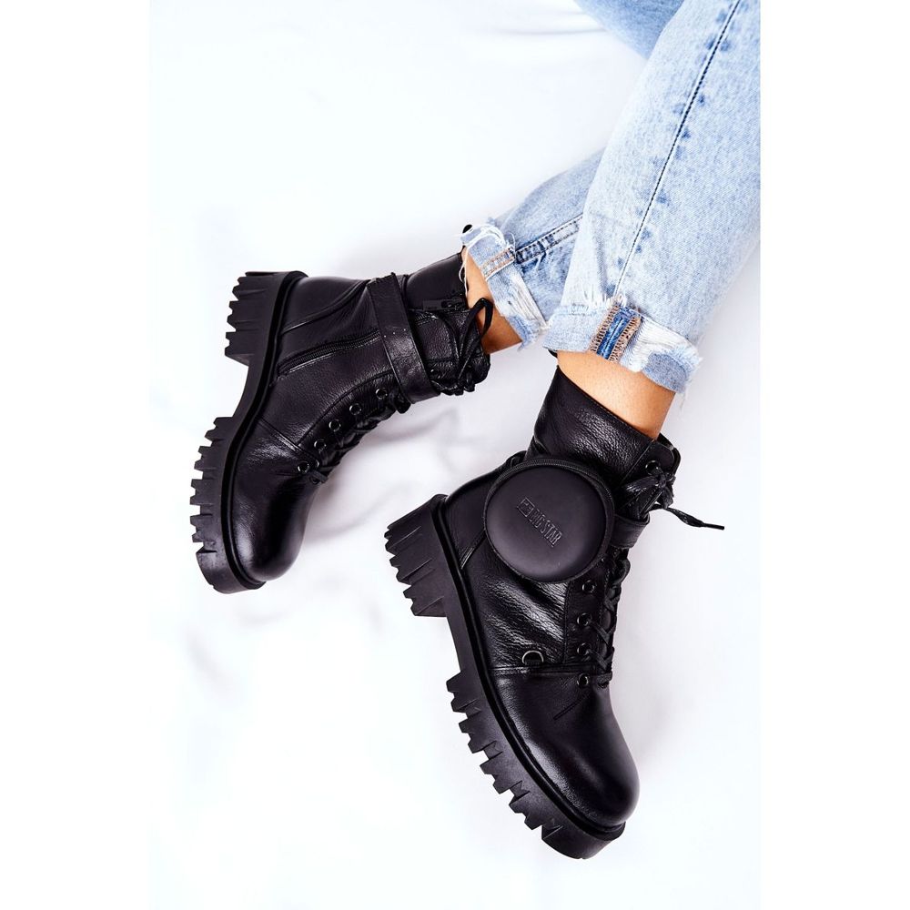 Szczegóły: Skórzane Ocieplane Workery Z Nerką Big Star II274430 Czarne