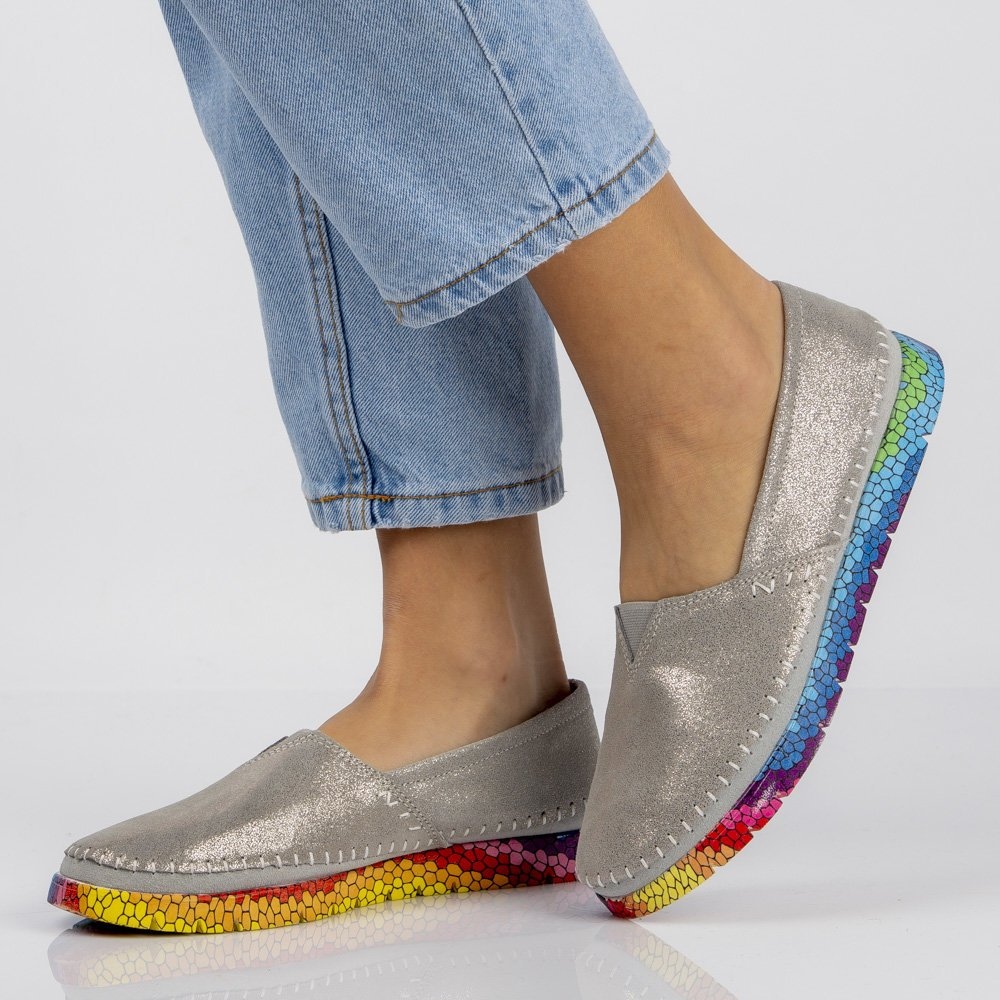 Wnętrze butów wyłożone jest materiałem, a wkładka wykonana ze skóry naturalnej sprawia, że stopy mogą cieszyć się komfortem przez cały dzień. Cholewka o wysokości 6 cm pięknie podkreśla nogi, a neutralny, srebrny kolor doskonale komponuje się z różnorodnymi stylizacjami — od casualowych po bardziej eleganckie.