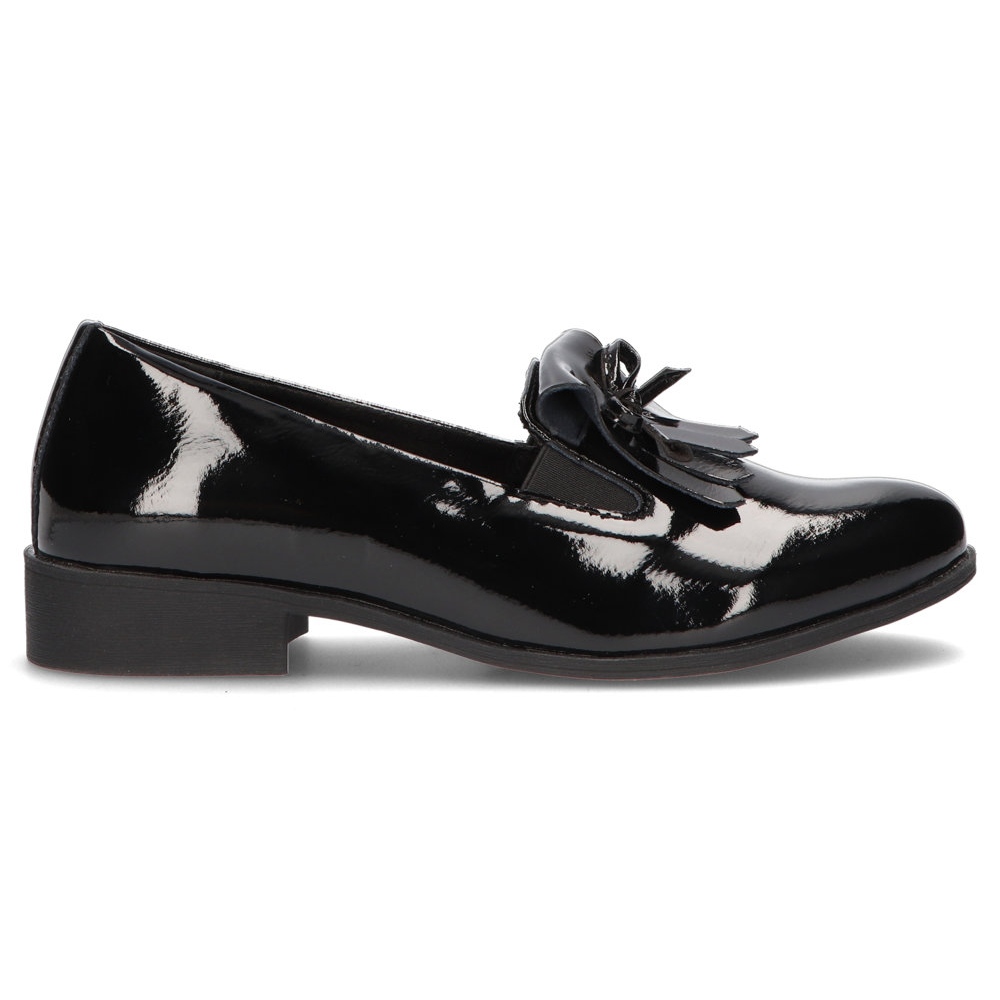 Model ten charakteryzuje się okrągłym noskiem oraz płaskim obcasem, co sprawia, że idealnie sprawdzi się w codziennych stylizacjach. Praktyczne zapięcie wsuwane umożliwia łatwe zakładanie i zdejmowanie, a wysoka cholewka (6 cm) nadaje im modny wygląd. Dodatkowo uwagę przyciągają subtelne frędzle oraz lakierowane wykończenie, które dodają butom nowoczesnego charakteru.