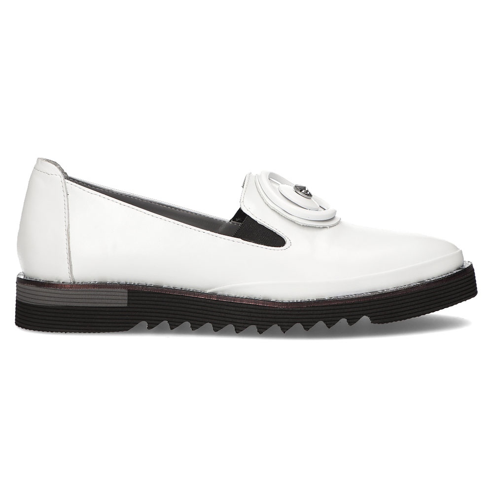 Okrągły nosek oraz płaski obcas, o wysokości 3 cm, zapewniają komfort noszenia przez długie godziny, a wsuwane zapięcie sprawia, że zakładanie i zdejmowanie butów jest szybkie i praktyczne. Wnętrze obuwia wyłożone jest również skórą naturalną, co dodatkowo podnosi komfort oraz higienę użytkowania.