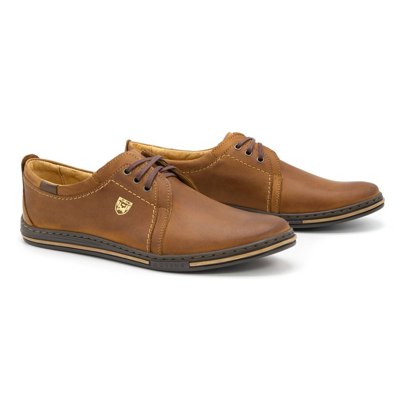 Szczegóły: Polbut Skórzane półbuty męskie 343 camel brązowe