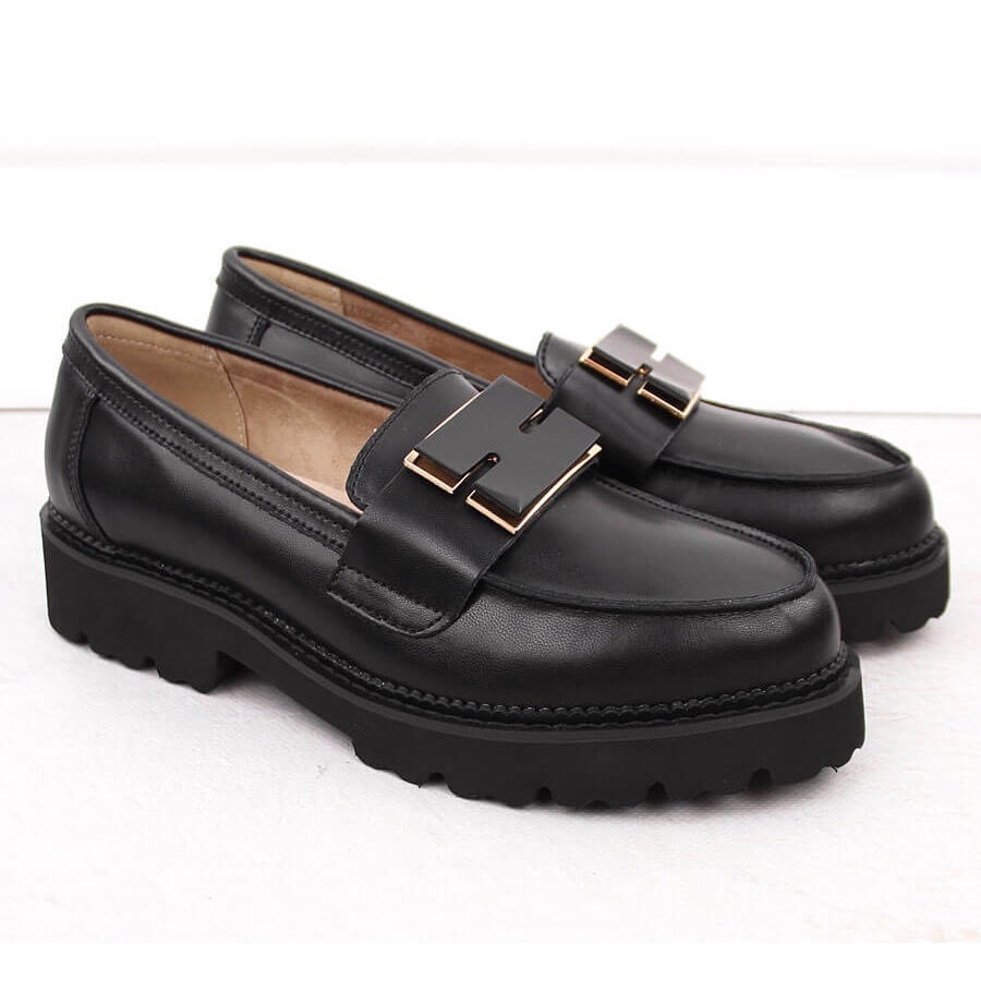 Szczegóły: Skórzane półbuty mokasyny damskie czarne Filippo DP6450
