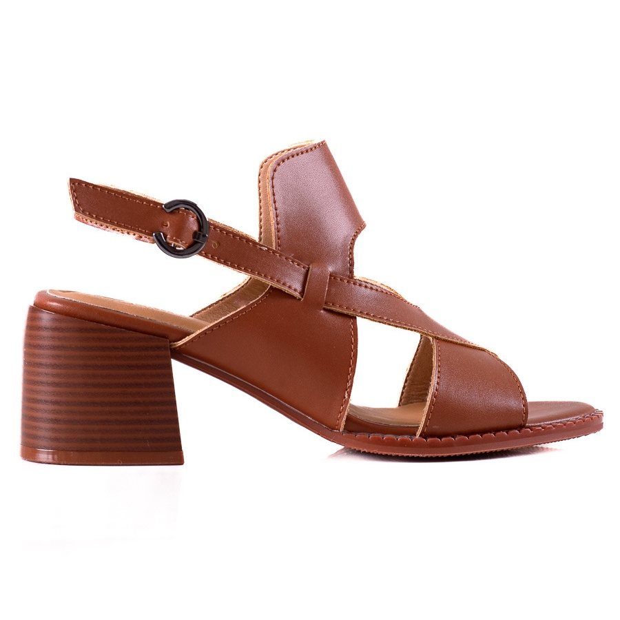 Szczegóły: Skórzane Sandały Na Obcasie LA.FI brązowe