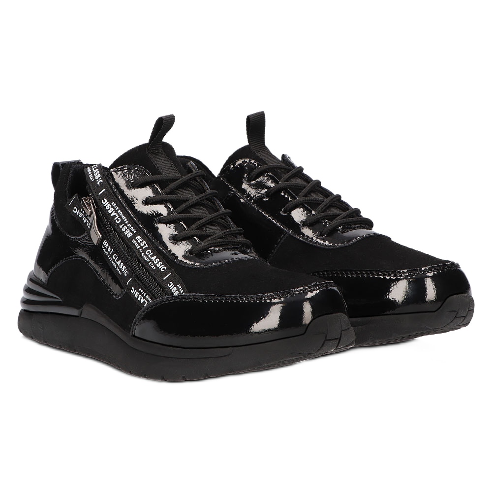 Wykonane z naturalnej skóry, sneakersy te zapewniają nie tylko estetykę, ale również trwałość. Ich lakierowane wykończenie dodaje szyku i podkreśla charakter każdej kobiecej stylizacji. Dzięki okrągłemu noskowi oraz niskiej wysokości (3,5 cm) obcasa, buty te zapewniają komfort noszenia przez cały dzień, nie męcząc stóp nawet podczas dłuższych spacerów.