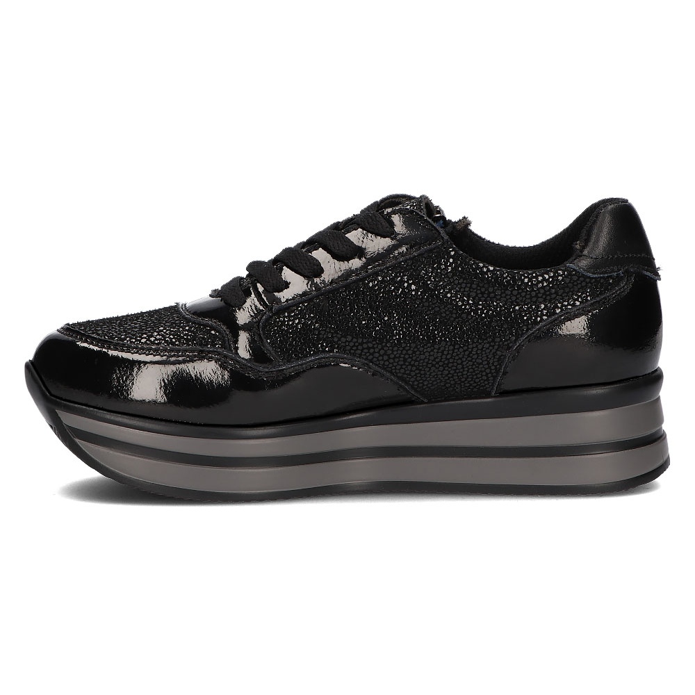 Buty posiadają platformę o wysokości 4 cm, co dodaje im modnego wyglądu oraz lekkości. Podeszwa wykonana z syntetycznego tworzywa jest odporna na ścieranie, a dzięki wysokości cholewki 7 cm sneakersy stabilnie trzymają stopę.