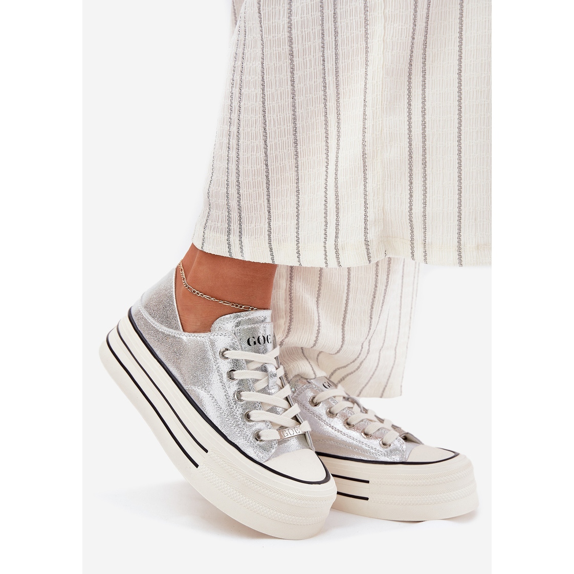 GOE Skórzane Trampki Damskie Na Platformie GOE RR2N4108 Srebrne srebrny