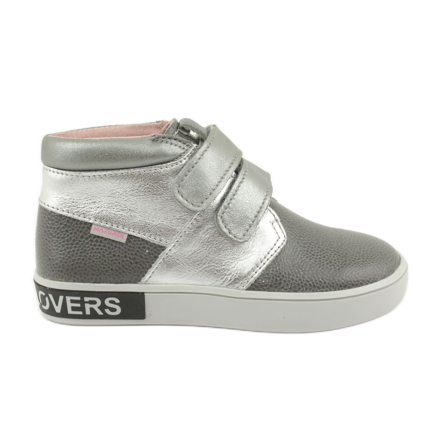 Szczegóły: Mazurek Skórzane trzewiki dziecięce na rzepy 1356 szare/srebrne