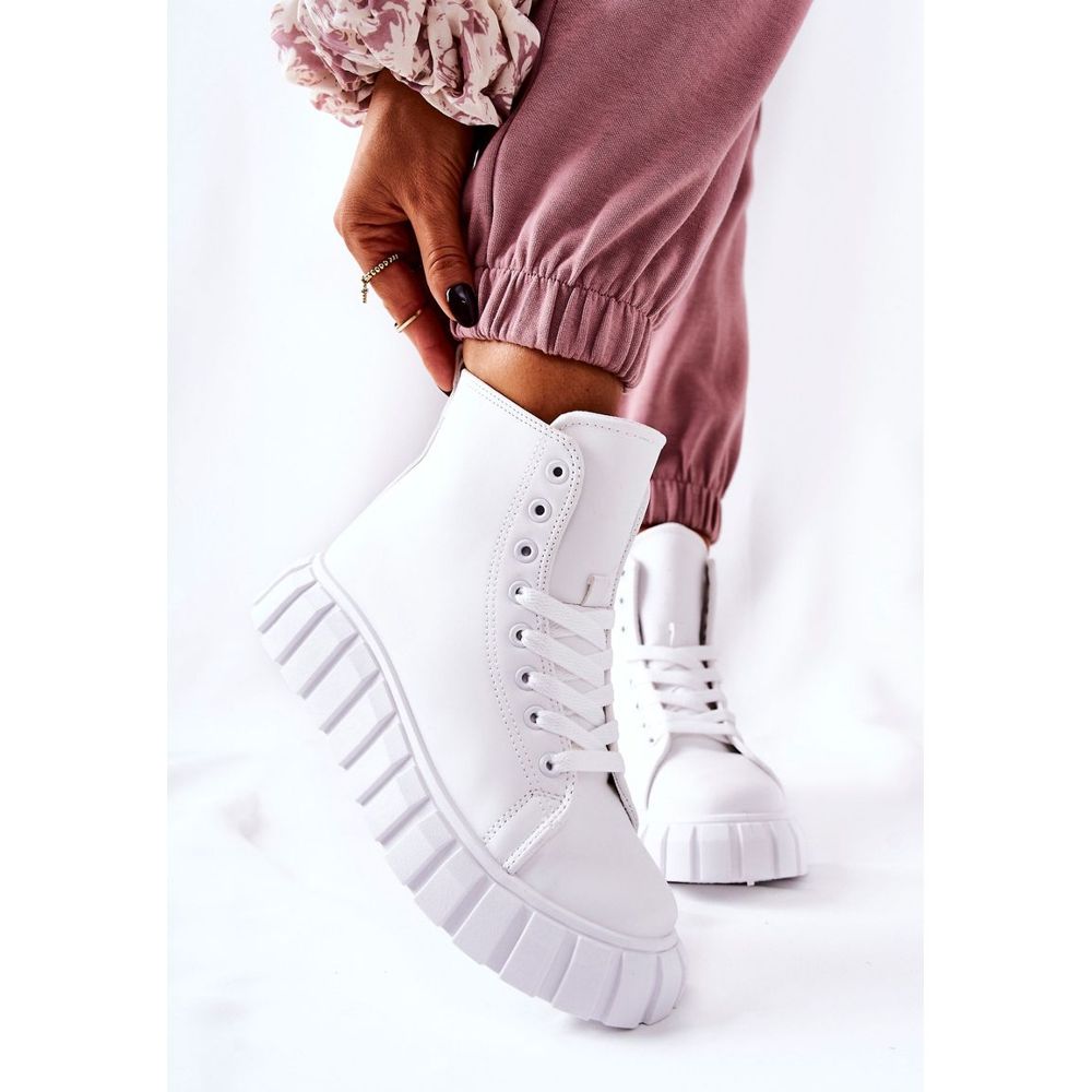 Inna marka Skórzane Wysokie Trampki Na Platformie Białe Meniphise