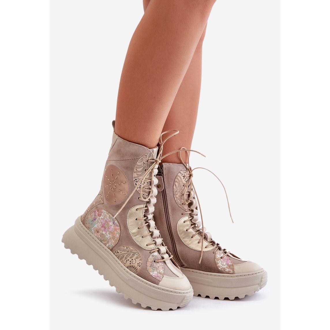 Maciejka Skórzane Zamszowe Botki Na Platformie Ocieplane Maciejka 06565-04 Beżowe beżowy