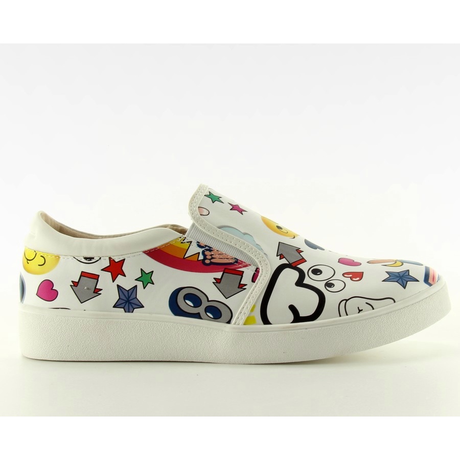 Slipony komiksowe 6120 White — białe slip-on z charakterem