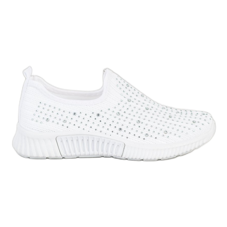 Szczegóły: SHELOVET Slipony Z Kryształkami białe