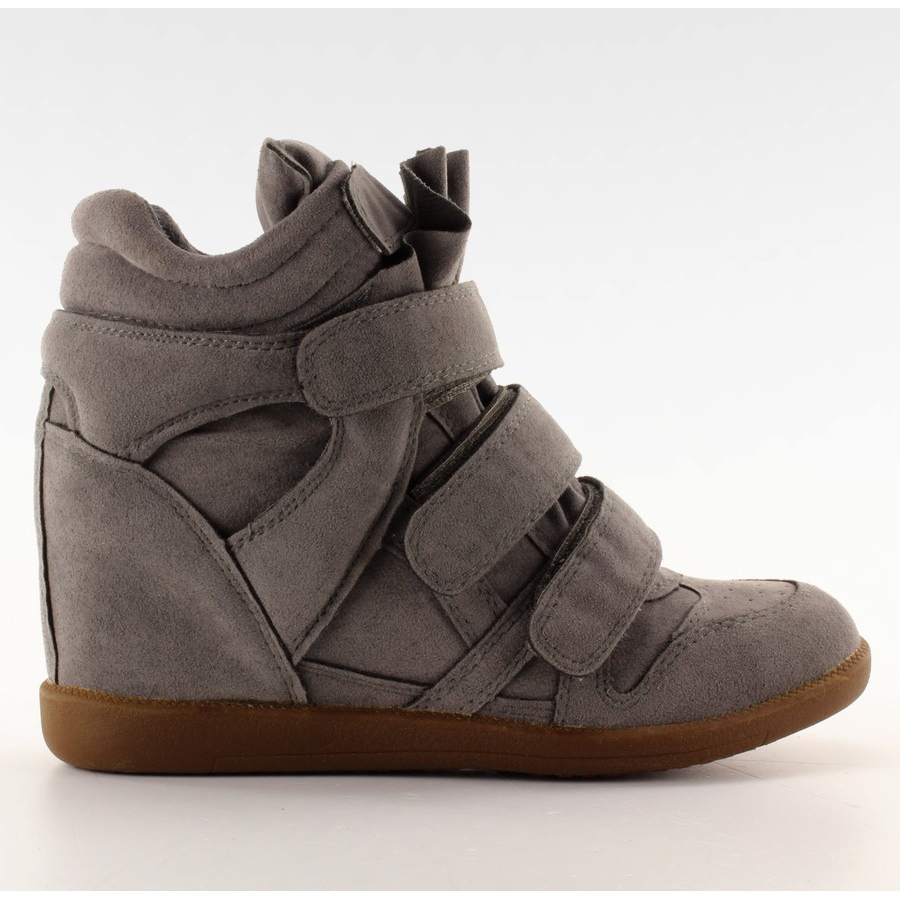 Sneakers zamsz z poduszeczką 6039 D. Grey — szare, stylowe i wygodne sneakersy na ukrytym koturnie (8 cm). Wykonane z ekologicznego zamszu, zapinane na szerokie paski z rzepami, z grubym językiem i miękką poduszeczką, która podkreśla ich charakter i poprawia komfort noszenia. Idealne dla osób szukających miejskiego looku z dodatkową wysokością przy zachowaniu wygody.