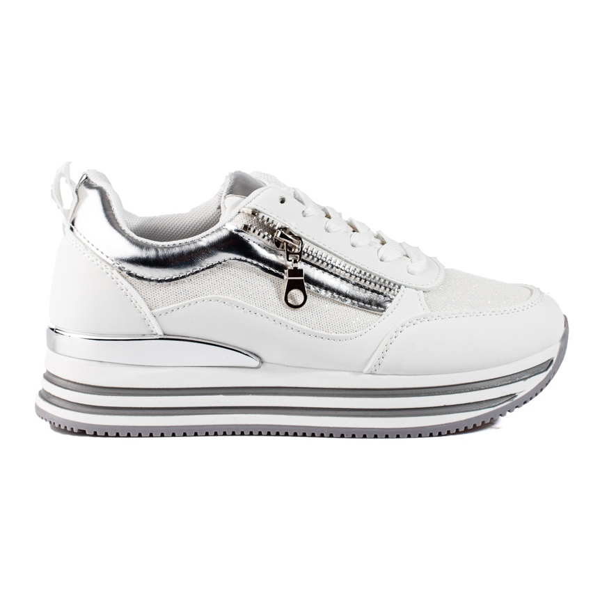 SHELOVET Sneakersy biało-srebrne na platformie Shelovet białe