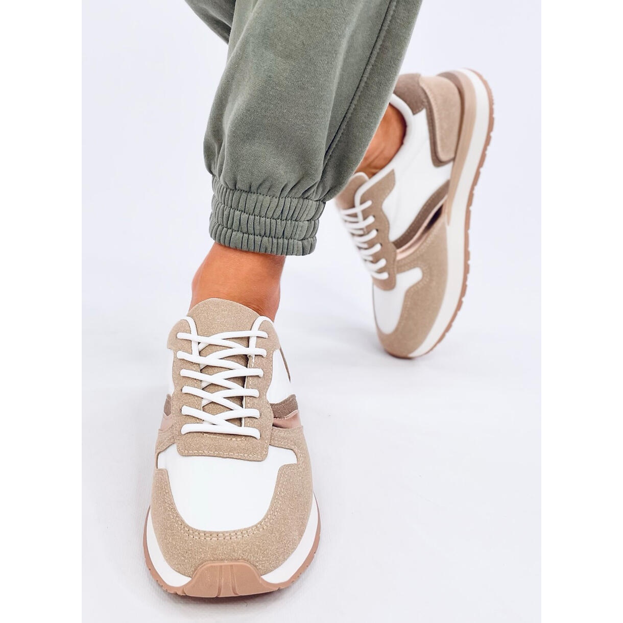 Inna marka Sneakersy damskie Carthy Khaki białe