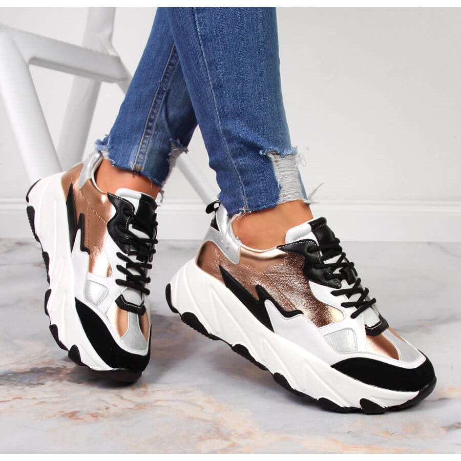 Szczegóły: Sneakersy damskie na platformie biało złote Potocki białe złoty